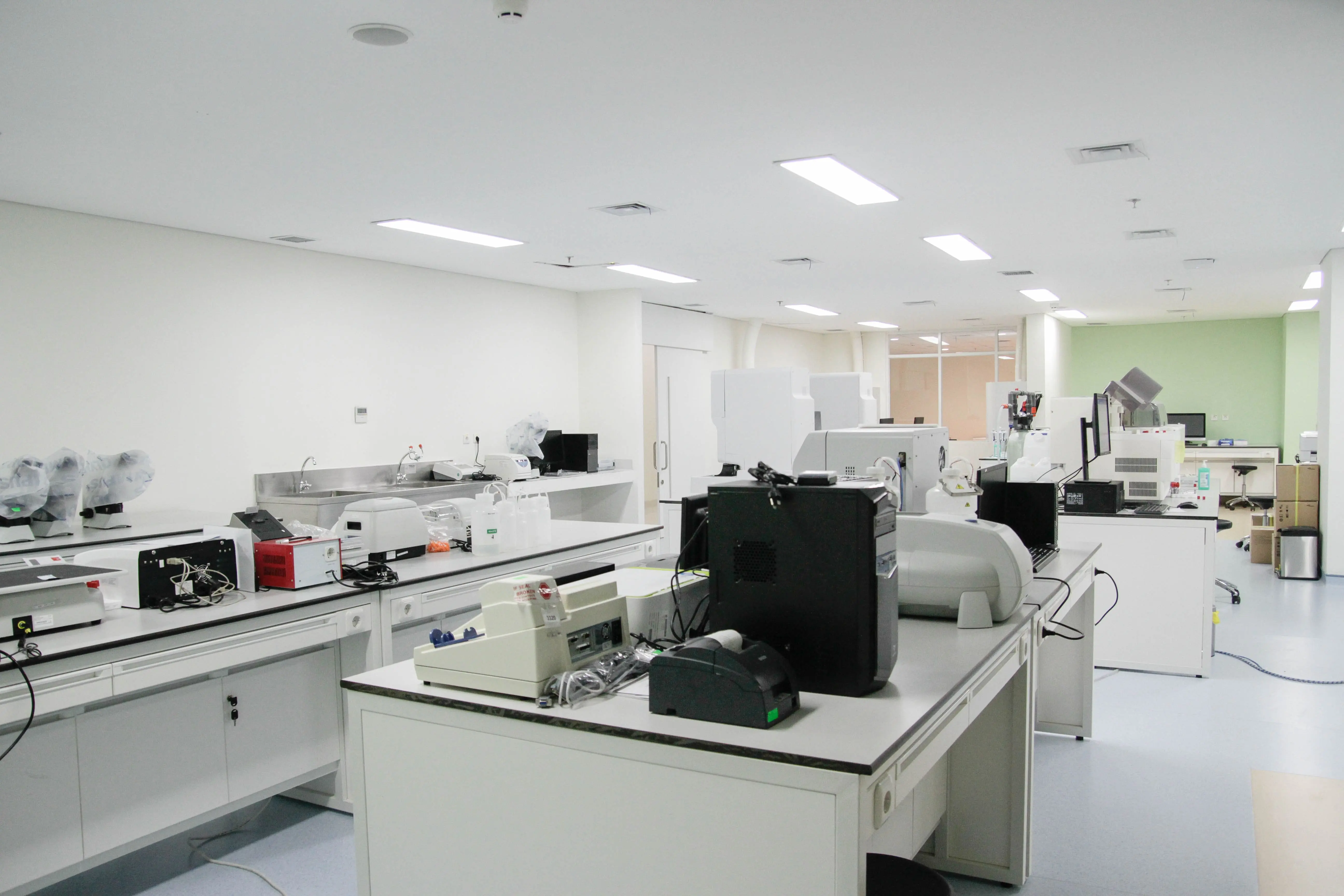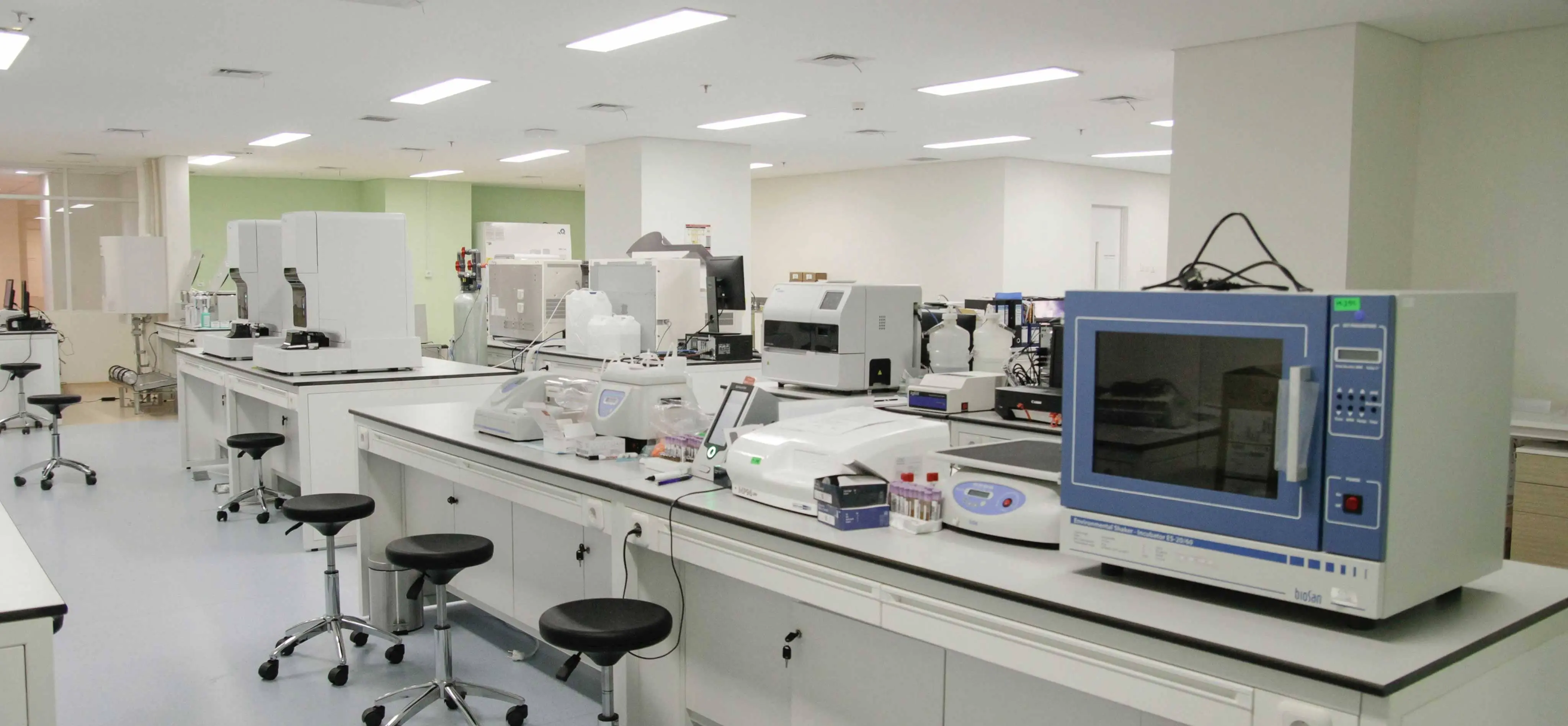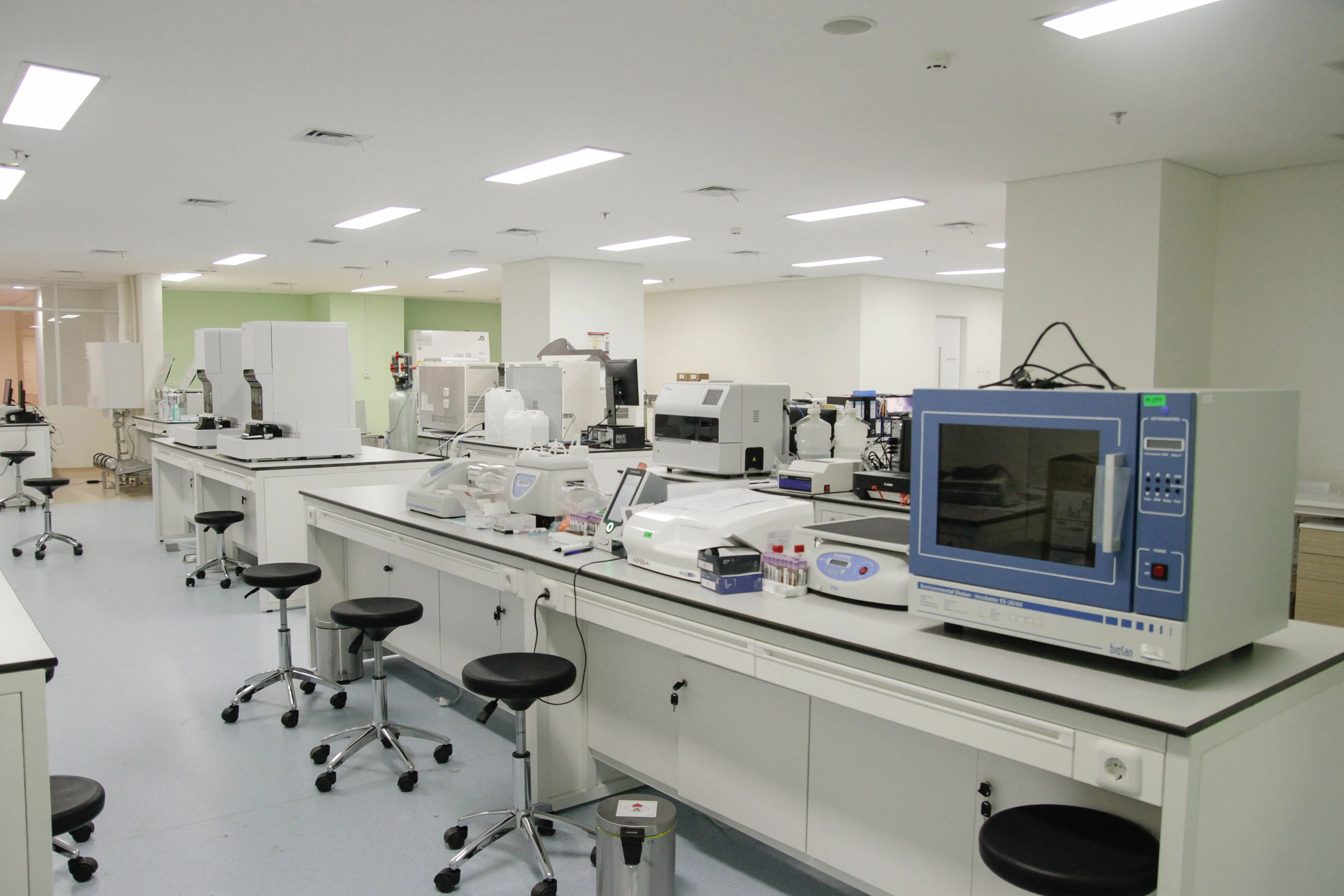 Laboratorium RSUI menerapkan konsep laboratorium terpadu sehingga memiliki laboratorium patologi klinik, patologi anatomi, mikrobiologi, parasitologi, biomolekuler, dan bank darah. Semua unit tersebut berada dalam area bersama yang berdampingan satu sama lain. Dengan konsep laboratorium terpadu, maka diharapkan pelayanan laboratorium dapat dilakukan secara komprehensif. Dokter di laboratorium terpadu RSUI terdiri dari empat spesialisasi dokter laboratorium, yaitu spesialis patologi klinik, spesialis patologi anatomi, spesialis mikrobiologi klinik, dan spesialis parasitologi klinik. Selain itu, pelayanan di laboratorium terpadu RSUI didukung oleh ATLM (Ahli Teknologi Laboratorium Medis), teknisi pelayanan darah, dan sarjana di bidang sains dan biomedis. Pemeriksaan patologi klinik berperan memeriksa specimen darah, urin, feses, dan cairan tubuh untuk melakukan penapisan penyakit, penegakan diagnosis, dan pemantauan terapi.